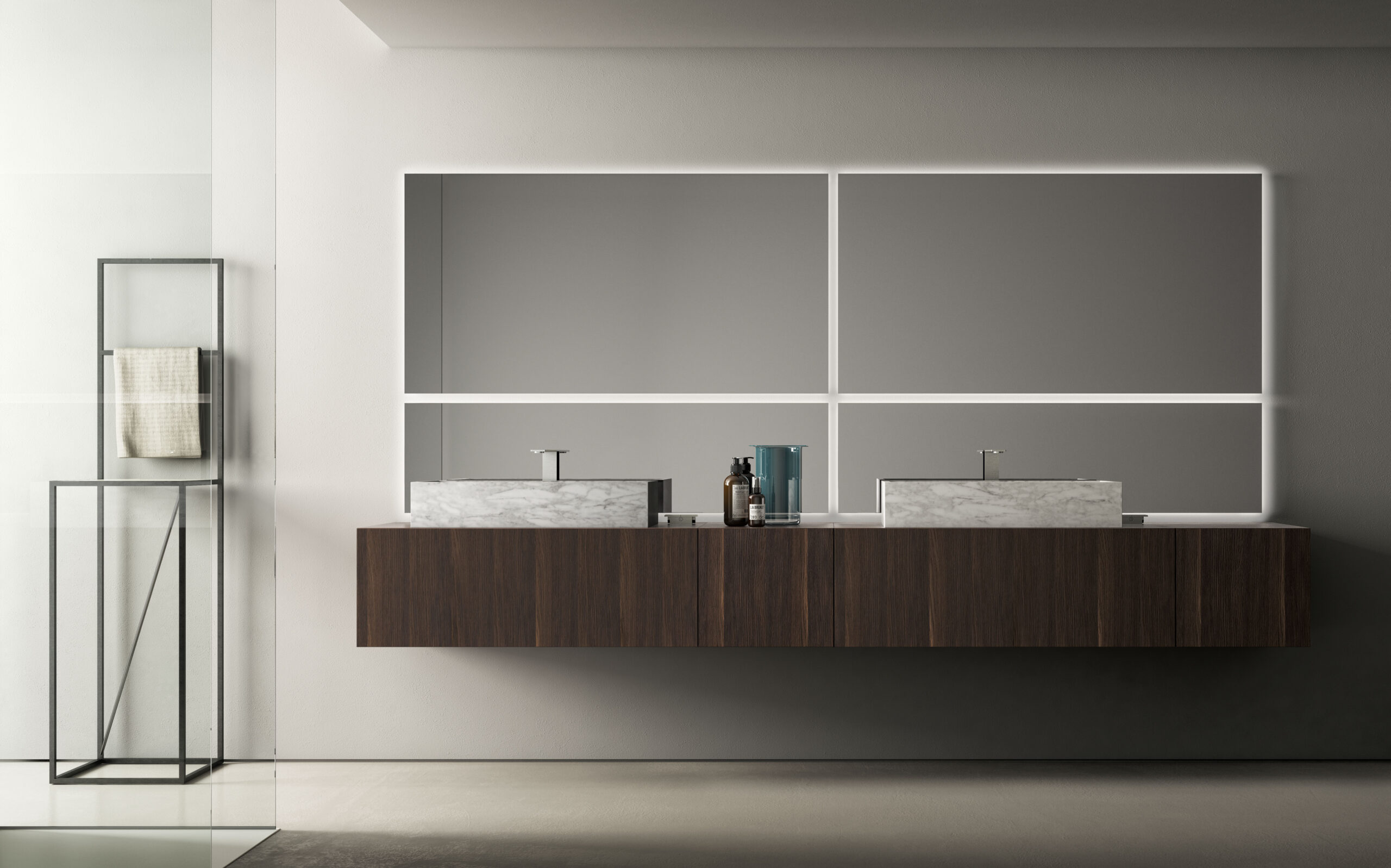 Våra lampor, och speglar med inbyggd belysning, finns SOM STANDARD med en temperatur på 4000 K (vitt ljus).